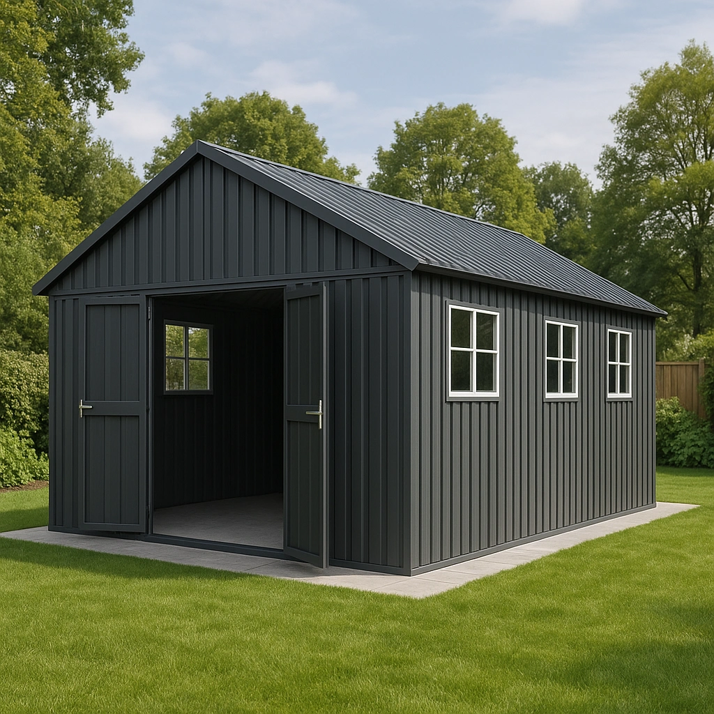Abri de jardin metal Acier galvanisé 300x500x240cm Noir graphite Noir graphite Double porte large pour véhicules et rangement volumineux