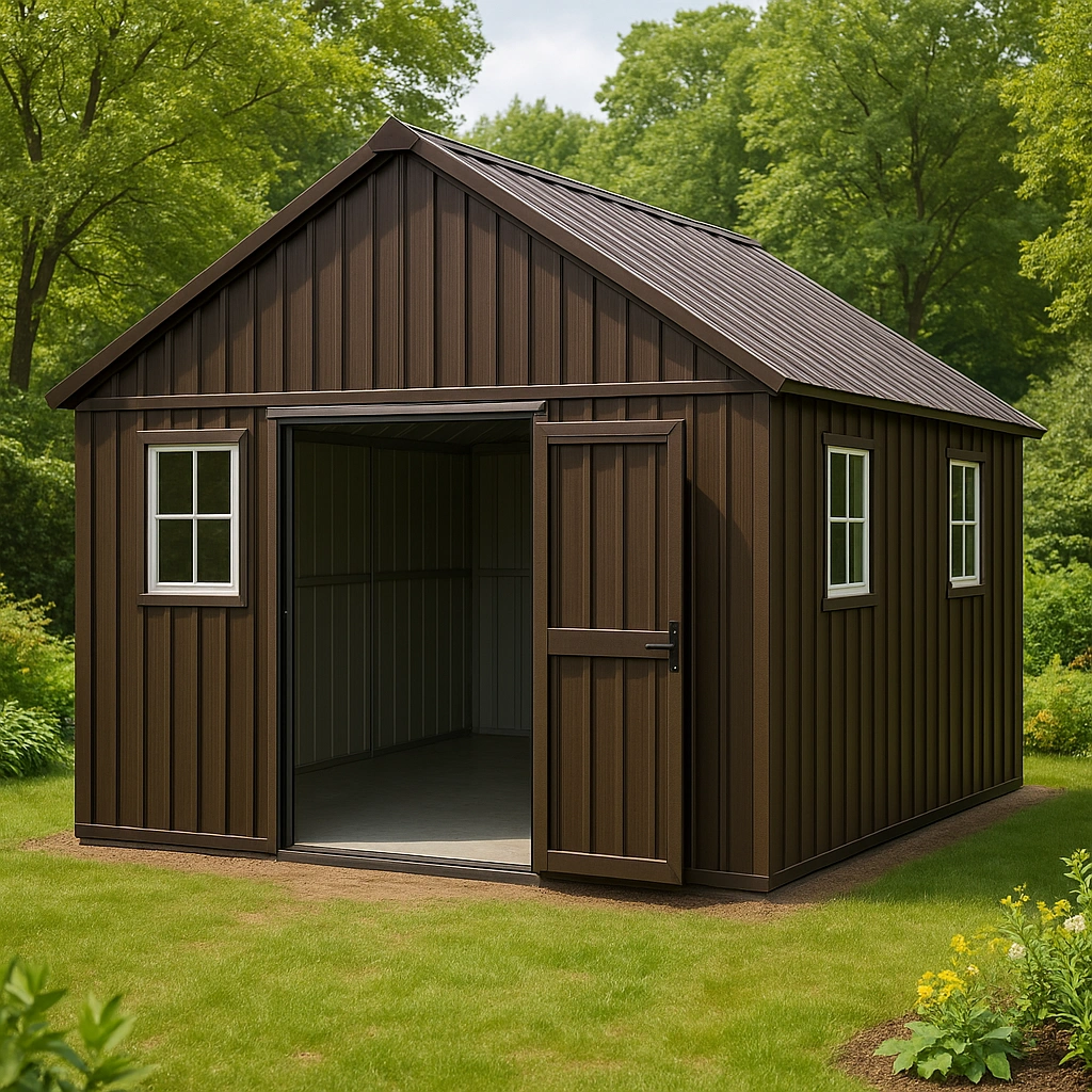 Abri de jardin metal 300x250x230cm Marron métal Abri avec porte pour rangement extérieur