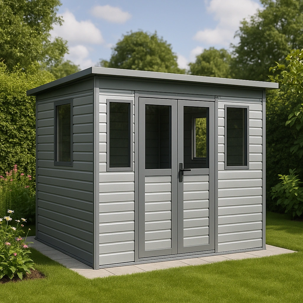 Abri de jardin metal Métal 240x240x240cm Gris Toit gris Fonction jardin et stockage